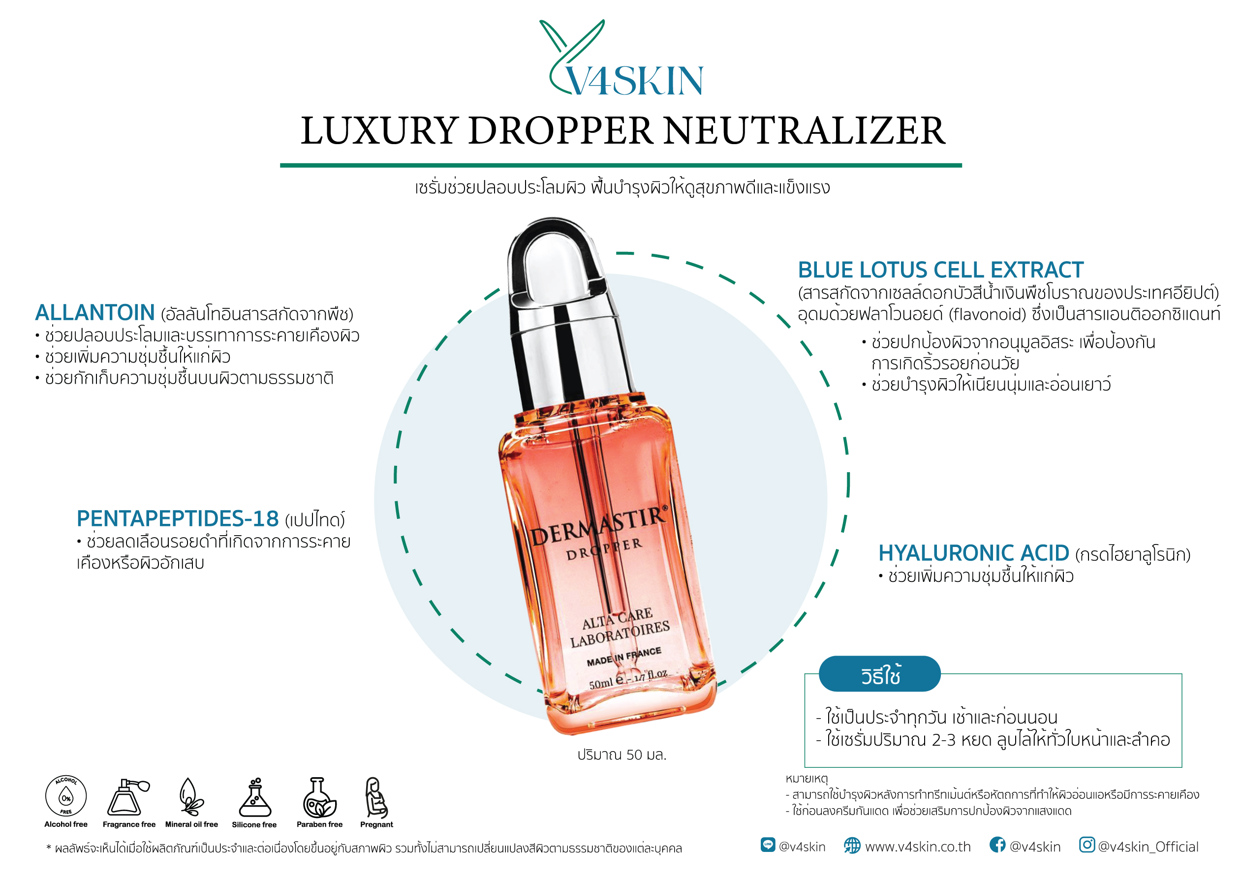 - ใช้เซรั่มปริมาณ 2-3 หยด ลูบไล้ให้ทั่วใบหน้าและลำคอ