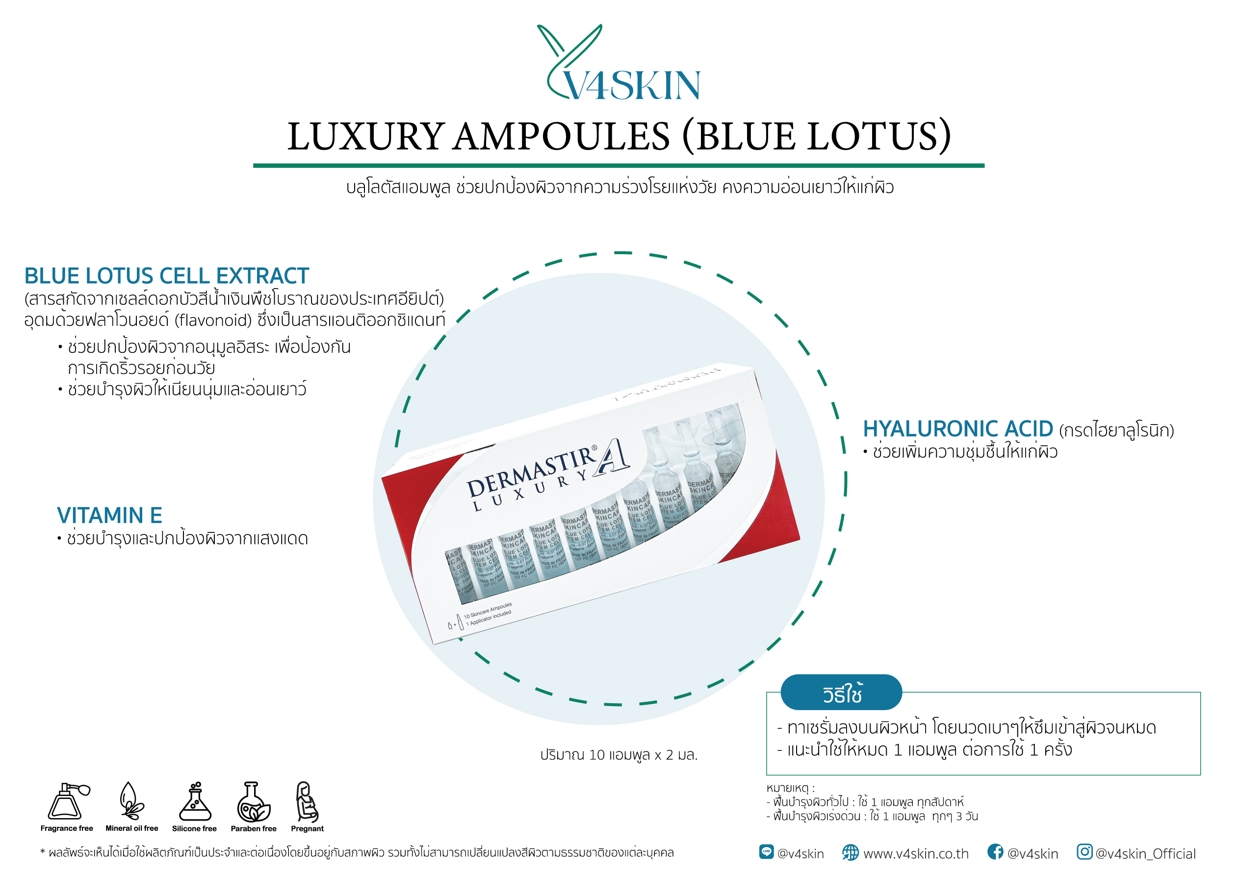 - ฟื้นบำรุงผิวเร่งด่วน : ใช้ 1 แอมพูล ทุกๆ 3 วัน ติดต่อกันเป็นเวลาหนึ่งเดือน เพื่อผลลัพธ์ที่มีประสิทธิภาพยิ่งขึ้น แนะนำให้ใช้เป็นประจำอย่างต่อเนื่อง